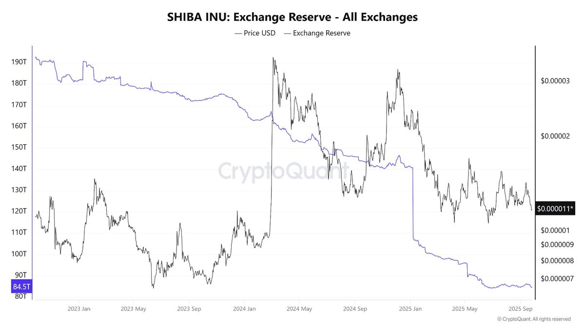 With 84T SHIB left in the tank across exchanges, the blue-chip meme coin is going DeFi: price surge in sight? Published: September 26, 2025 │ 4:07 PM GMT Created by Gabor Kovacs from DailyCoin The dry-up of Shiba Inu (SHIB) reserves on crypto exchanges is getting real. On Friday, the popular canine coin has plummeted