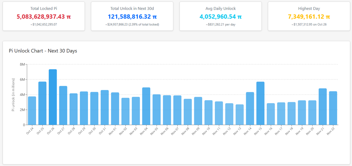 Aside from the lackluster crypto exchange listing & substantial delays in the roll-out of the 100 decentralized application (dApp) ecosystem, there’s one more thing bothering the Pioneers. Over half a year into launch, there’s still an average unlock of 4.052 million Pi Coins (PI), poured onto the markets daily.